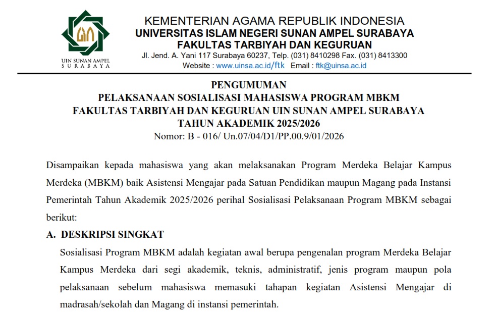 Pengumuman Sosialisasi Program MBKM TA 2025/2026