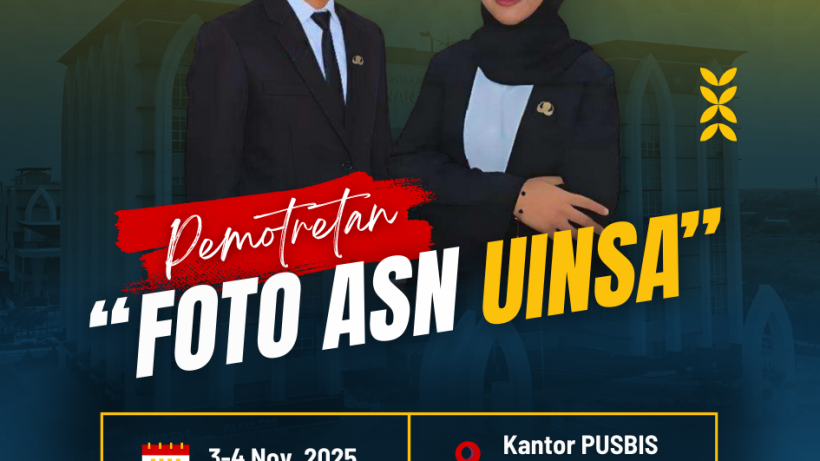 Hai #CivitasUINSA! 👋Berdasarkan Nota Dinas Nomor: Pt-826/Un.07/01/R/KP.01/10/2025 perihal Pembaharuan Foto ASN pada SIMSDM/SIMPEG5, Pusat Pengembangan Bisnis (PUSBIS) UINSA membuka layanan pemotretan foto ASN UINSA yang akan dilaksanakan pada: 🗓 Tanggal: 3–4 November 2025🕗 Waktu: 08.00 – 12.00 WIB📍 Tempat: Kantor PUSBIS Lt. 2 Kantin Maqha, Kampus Ahmad Yani Pastikan hadir dengan