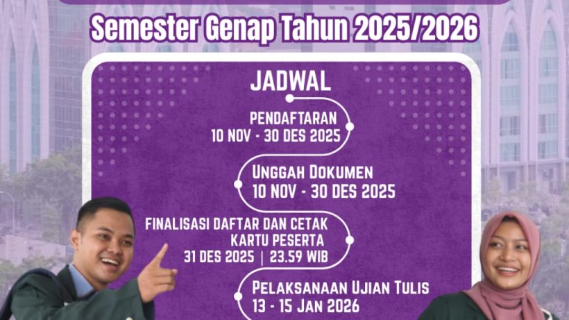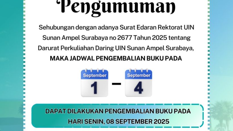 Assalamu'alaikum Wr. Wb. Diberitahukan bahwa pendaftaran mahasiswa baru jenjang Magister dan Doktor Semester Genap Tahun 2025/2026 dibuka mulai tanggal 10 November - 30 Desember 2025. Pada pendaftaran Semester Genap ini, UINSA akan menawarkan 2 (dua) pilihan perkuliahan, yaitu perkuliahan reguler dan adaptif. Selengkapnya baca disini. Atas perhatiannya diucapkan terima kasih.