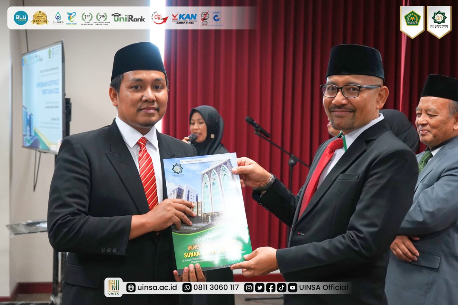 UINSA Newsroom, Selasa (26/08/2025); Senin, 25 Agustus 2025, UIN Sunan Ampel (UINSA) Surabaya menggelar yudisium 10 angkatan Peserta Program Peningkatan Kompetensi Dosen Pemula (PKDP) Tahun 2025 di Ruang Sidang Lt. 3 Tower KH. Mahrus Aly Kampus A. Yani UINSA Surabaya. Yudisium yang diikuti 391 peserta ini digelar secara hybrid dan dikukuhkan langsung Rektor UINSA, Prof. Akh. Muzakki, M.Ag., Grad.Dip.SEA., M.Phil., Ph.D., selaku Pimpinan Perguruan Tinggi Penyelenggara (PTP) UINSA Surabaya. Kelulusan ratusan dosen ini ditetapkan melalui Surat Keputusan (SK) Rektor UIN Sunan Ampel Surabaya Nomor 1174 Tahun 2025. SK tersebut diterbitkan pada 14 Agustus 2025.