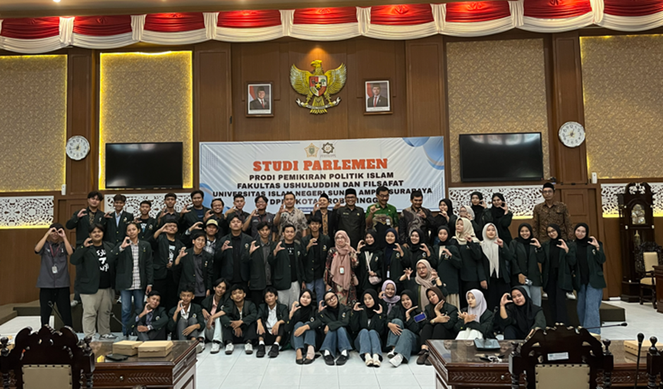 Untuk memperkuat kompetensi akademik dan memperluas wawasan mahasiswa, Program Studi Pemikiran Politik Islam Fakultas Ushuluddin dan Filsafat (FUF) UIN Sunan Ampel Surabaya menggelar kegiatan Studi Parlemen di Kantor DPRD Kota Probolinggo. Kegiatan ini diikuti oleh mahasiswa semester 1, 3, dan 5, dengan mengusung tema “Membedah Politik Berkeadaban yang Berpihak pada Kemanusiaan.” Acara berlangsung dari pukul 09.00 hingga 13.00 WIB dan menghadirkan dua narasumber utama: Ryadluls Sholihin Firdaus, M.Pd., Ketua Fraksi Gerakan Pembangunan Indonesia Raya DPRD Kota Probolinggo, serta Firmansyah, M.Fil.I., akademisi pemikiran Islam sekaligus pegiat media sosial yang bertindak sebagai moderator.