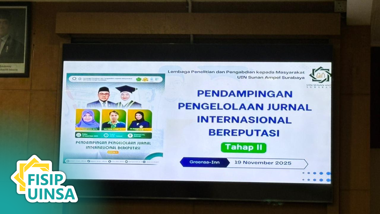 SURABAYA – Universitas Islam Negeri Sunan Ampel (UINSA) Surabaya menegaskan komitmennya dalam mempercepat internasionalisasi riset melalui kegiatan strategis Pendampingan Pengelolaan Jurnal Internasional Bereputasi pada Rabu 19 November 2025. Kegiatan ini, yang diinisiasi oleh Lembaga Penelitian dan Pengabdian kepada Masyarakat (LPPM) UINSA, berhasil menghimpun seluruh pengelola jurnal dari berbagai fakultas di lingkungan UINSA, termasuk para dosen dari FISIP, dalam upaya kolektif meningkatkan kualitas dan reputasi publikasi ilmiah kampus.