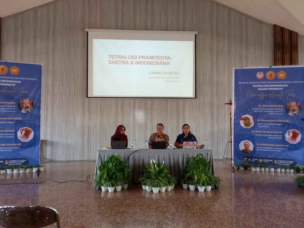 Kegiatan yang berlangsung di Auditorium Lantai 2 UKWMS Kampus Madiun, Jl. Manggis No. 15–17, Kota Madiun, ini mengusung tema besar “Sastra dan Indonesia dalam Perspektif Pramoedya Ananta Toer”. Seminar tersebut digelar dalam rangka memperingati 100 tahun kelahiran Pramoedya Ananta Toer (1925–2025), novelis legendaris yang banyak memberi warna pada perkembangan sastra Indonesia modern.