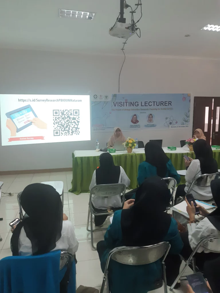 Pada Senin, 21 November 2022, Program Studi Pendidikan IPA Fakultas Tarbiyah dan Keguruan UIN Sunan Ampel Surabaya kembali menunjukkan kiprah akademiknya melalui kegiatan Visiting Lecturer yang diselenggarakan oleh UIN Mataram. Mengusung tema “Research Method of Biology Education”, kegiatan ini berlangsung mulai pukul 09.00 hingga 10.30 WITA di kampus UIN Mataram dan diikuti oleh mahasiswa serta dosen dari Program Studi Pendidikan Biologi dan Pendidikan IPA dengan antusias yang tinggi.