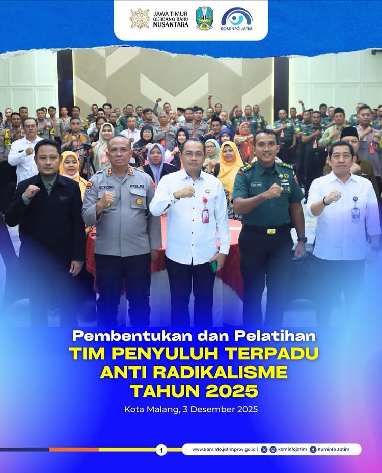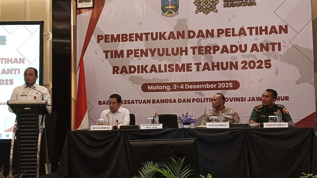 Upaya pencegahan radikalisme dan terorisme di Jawa Timur kembali mendapatkan perhatian serius melalui penyelenggaraan kegiatan Pelatihan dan Pembentukan Tim Penyuluh Terpadu untuk Pencegahan Radikalisme–Terorisme oleh Badan Kesatuan Bangsa dan Politik (Bakesbangpol) Provinsi Jawa Timur. Kegiatan ini berlangsung selama dua hari, 3–4 Desember 2025, bertempat di Ijen Suite, Malang, dan menghadirkan berbagai unsur penting di bidang keamanan sosial dan kehidupan beragama.