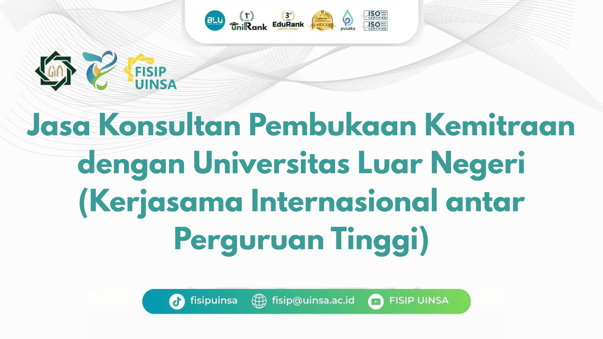 Di era globalisasi, kerjasama internasional bukan lagi pilihan, melainkan sebuah keharusan bagi perguruan tinggi yang ingin bersaing di tingkat global. Kemitraan internasional membuka akses terhadap sumber daya dan kesempatan yang lebih luas, memperkaya lingkungan belajar menjadi multikultural, dan meningkatkan kualitas penelitian melalui kolaborasi lintas batas.55 Selain itu, jaringan kemitraan yang kuat secara signifikan meningkatkan reputasi dan daya saing universitas, menarik mahasiswa dan peneliti internasional, serta mendukung pencapaian akreditasi dan standar kelas dunia.Tujuan utama dari layanan ini adalah untuk memfasilitasi dan mengakselerasi proses internasionalisasi perguruan tinggi mitra dengan membangun kemitraan yang saling menguntungkan dan berkelanjutan. Output yang diharapkan adalah terjalinnya kerjasama formal yang terdokumentasi dalam MoU/MoA, serta terimplementasikannya program-program internasional yang memberikan manfaat nyata bagi mahasiswa, dosen, dan institusi, seperti peningkatan mobilitas internasional, publikasi bersama di jurnal bereputasi, dan kurikulum yang berwawasan global.