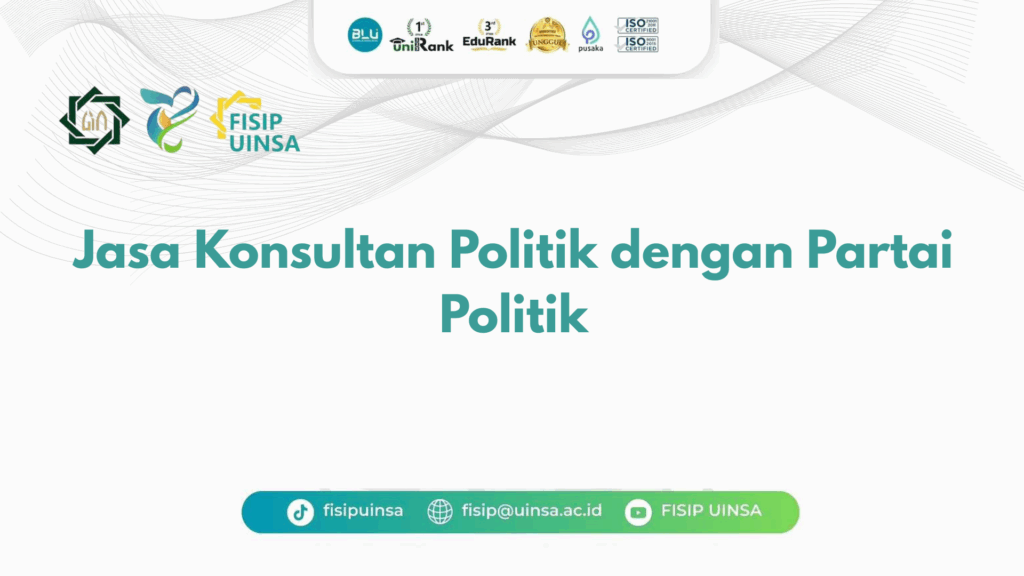 Kemenangan dalam pemilu modern tidak diraih secara kebetulan, melainkan melalui strategi yang cerdas, terukur, dan berbasis data. PUKAPPOL FISIP UINSA menawarkan keunggulan unik: kedalaman analisis seorang akademisi dan ketajaman strategi seorang praktisi. Kami tidak hanya memberikan saran, tetapi juga menyediakan data dan analisis yang Anda butuhkan untuk membuat keputusan yang tepat. Percayakan strategi pemenangan partai dan kandidat Anda kepada kami, dan mari bersama-sama meraih kemenangan secara terhormat dan ilmiah. Hubungi Whatsapp ……. (FISIP UINSA)