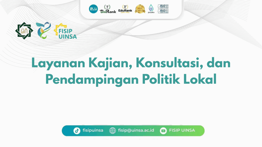 Dalam arena politik lokal yang kompetitif, keputusan yang didasarkan pada intuisi saja tidak lagi cukup. Anda memerlukan data yang akurat, analisis yang mendalam, dan strategi yang teruji. PUKAPPOL FISIP UINSA hadir untuk menyediakan tiga hal tersebut. Dengan rekam jejak kerjasama yang luas di seluruh Jawa Timur dan tim konsultan yang terdiri dari para akademisi-praktisi terbaik, kami siap menjadi mitra strategis Anda untuk memahami dan menavigasi kompleksitas politik lokal. Baik untuk merumuskan kebijakan publik maupun untuk memenangkan kontestasi elektoral, PUKAPPOL adalah pilihan yang tepat. Hubungi Whatsapp ……. (FISIP UINSA)