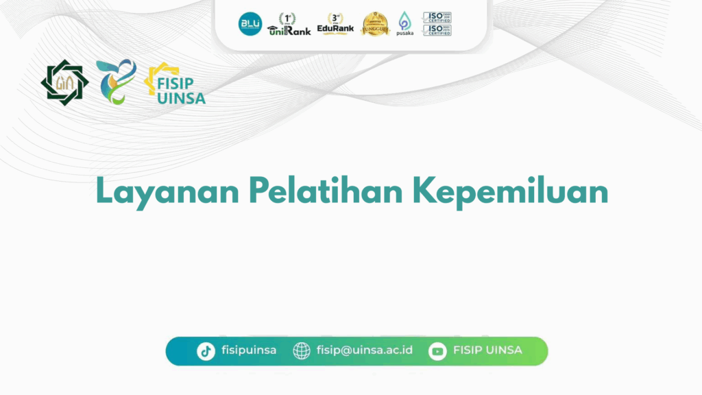 Suksesnya sebuah pemilu tidak hanya ditentukan pada hari pemungutan suara, tetapi dari sejauh mana seluruh pemangku kepentingan memahami perannya masing-masing. FISIP UINSA mengundang Anda—baik penyelenggara, peserta pemilu, maupun kelompok masyarakat sipil—untuk berkolaborasi dalam meningkatkan kualitas demokrasi kita. Dengan dukungan para pakar bersertifikat dan rekam jejak kerjasama yang terbukti, kami siap membantu Anda merancang dan melaksanakan program pelatihan kepemiluan yang efektif dan berdampak. Mari bersama-sama kita kawal integritas pemilu melalui pendidikan. Hubungi Whatsapp ……. (FISIP UINSA)