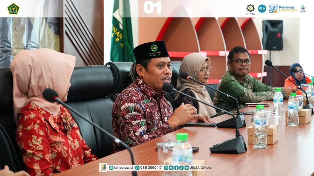 Kegiatan ini menghadirkan tiga narasumber yakini Dr. Holilur Rohman, M.H.I., selaku Direktur Klinik Keluarga Sakinah UINSA; Dr. Mahir, M.Fil.I., selaku Ketua Satgas Pencegahan dan Penanganan Kekerasan Seksual (PPKS); serta Dewi Isrofin, M.Pd., dari Dhama Wanita Persatuan UINSA.