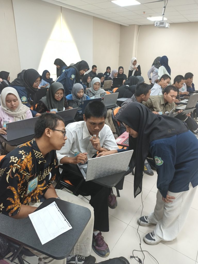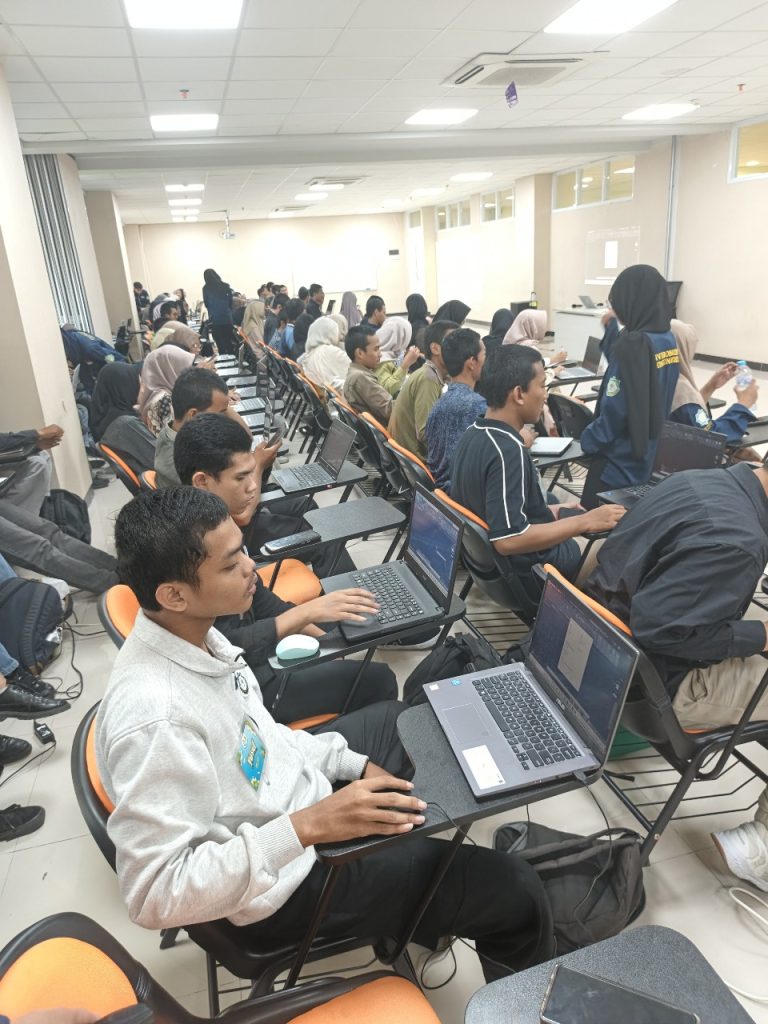Memasuki sesi mentoring, peserta diberikan kesempatan untuk mempraktikkan materi yang telah disampaikan dengan bimbingan dari pemateri serta tim pendamping. Antusiasme peserta terlihat dari keaktifan mereka dalam bertanya dan mencoba langsung di perangkat masing-masing. Setelah sesi praktik selesai, kegiatan dilanjutkan dengan sesi dokumentasi bersama seluruh peserta dan panitia. Peserta kemudian mengerjakan post-test untuk mengevaluasi peningkatan pemahaman mereka terhadap materi yang telah diberikan. Sebagai penutup, dilakukan pemaparan singkat terkait Kegiatan Pasca Pelatihan (KPP) yang merupakan bentuk penerapan hasil pelatihan, sebelum kegiatan resmi ditutup oleh MC.