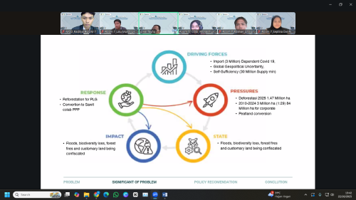 This discussion uses SDIPS analysis levels such as State, Pressures, Response, Impact, and Driving force. And because the world is multipolar, many policies are changing. 1:29 Forest stations in food estates are very dangerous because of corporations. And forests are often used for the benefit of the state. Forest stations are not being rehabilitated but are instead being turned into palm oil plantations because the state is working with companies for its own benefit.