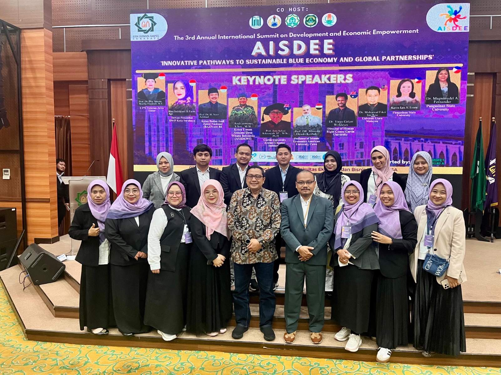 Fakultas Ekonomi dan Bisnis Islam UIN Sunan Ampel Surabaya sukses menyelenggarakan The Third Annual International Summit on Development and Economic Empowerment (AISDEE 2025) pada Selasa, 9 September 2025. Konferensi internasional bertema “Innovative Pathways to Sustainable Blue Economy and Global Partnerships” ini berlangsung di Amphiteater UINSA dan dihadiri akademisi, praktisi, peneliti, hingga mahasiswa dari berbagai negara.