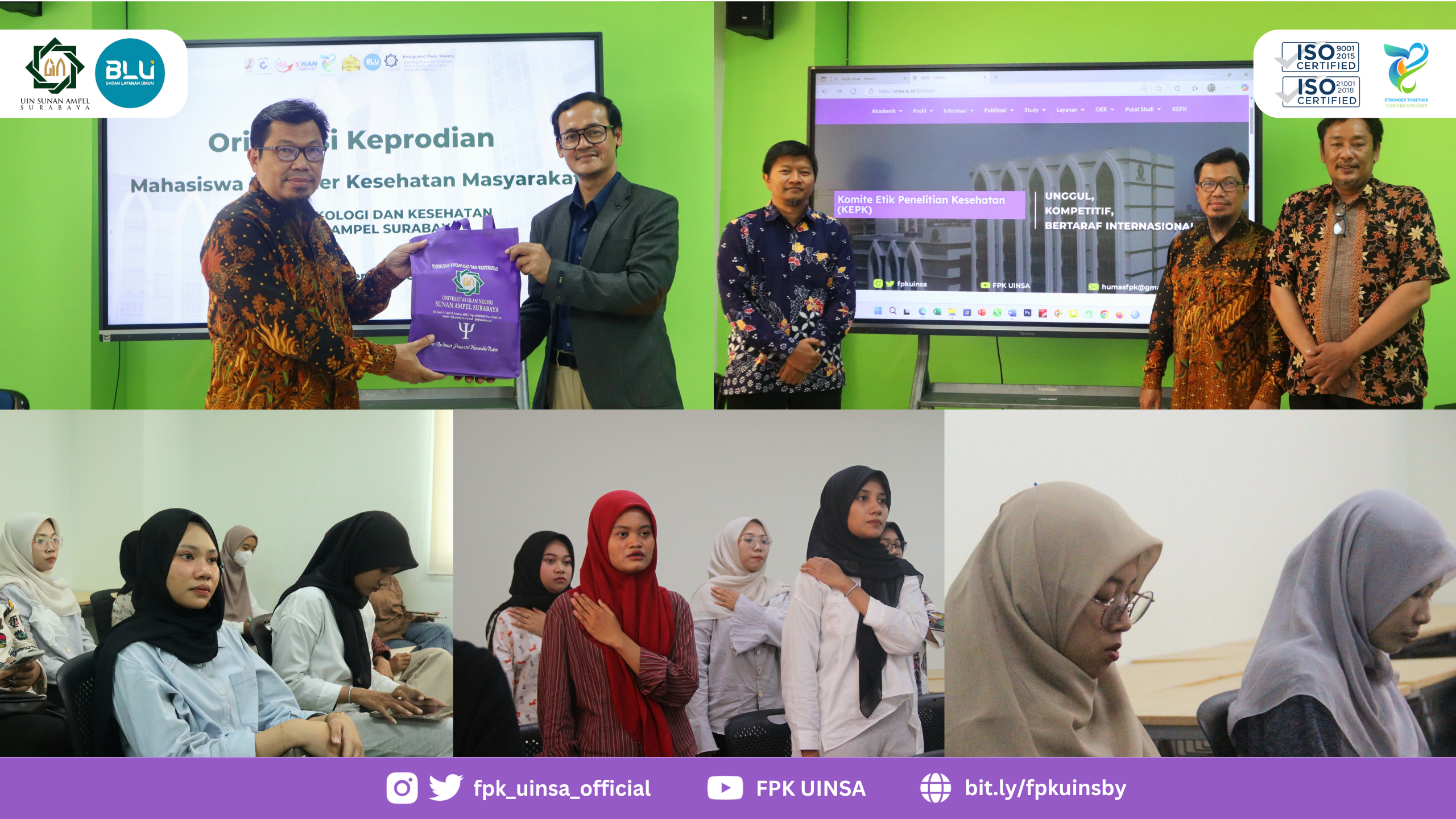 Surabaya – (20/09/2025) Fakultas Psikologi dan Kesehatan Universitas Islam Negeri Sunan Ampel Surabaya (FPK UINSA) menggelar Orientasi Keprodian Magister Kesehatan Masyarakat (S2 Kesmas) di lt. 2 Gedung FPK UINSA. Acara ini dihadiri oleh Dekan FPK Dr. phil. Khoirun Niam.; Wakil dekan (Wadek) I Dr. Suryani, S.Ag., S.Psi., M.Si.; Ketua Prodi (Kaprodi) Magister Kesehatan masyarakat Dr. Eko Teguh Pribadi, S.K.M., M.Kes.; Sekretaris Prodi (sekprodi) Magister Kesehatan masyarakat Dedy Suprayogi, S.KM., M.KL.; Dosen FPK, serta mahasiswa Magister Kesehatan masyrakat dan mahasiswa akhir Program Studi (Prodi) Gizi.