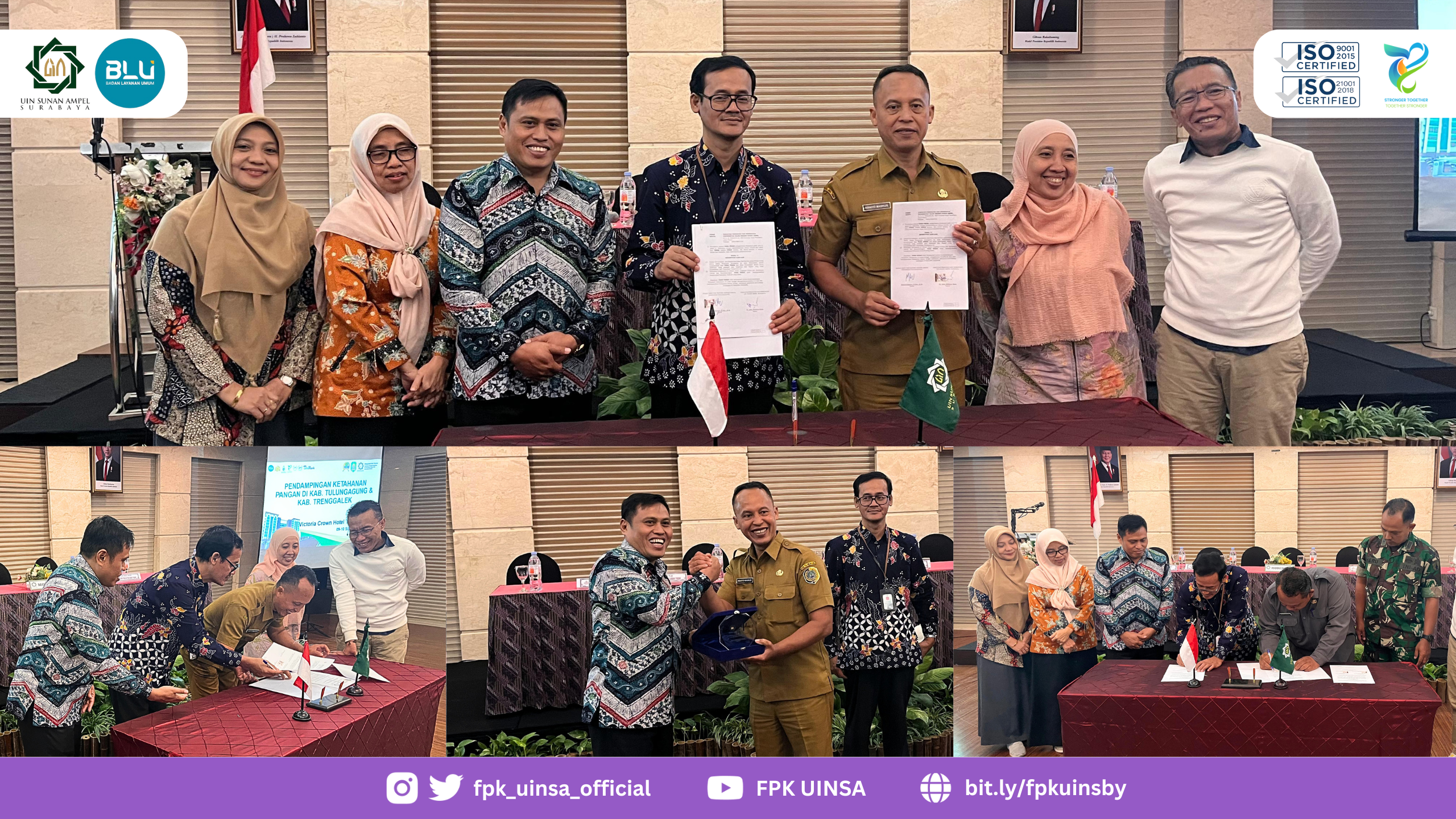Tulungagung – (09/09/2025) Fakultas Psikologi dan Kesehatan Universitas Islam Negeri Sunan Ampel Surabaya (FPK UINSA) manandatangani Momerandum of Agreement (MoA) dengan pihak Komando Distrik Militer 0806 serta Dinas Pertanian dan Pangan Kabupaten Trenggalek. Tentang pelaksanaan, penyedian, dan pendampingan program Makanan Bergizi Gratis (MBG) di Kabupaten Trenggalek.