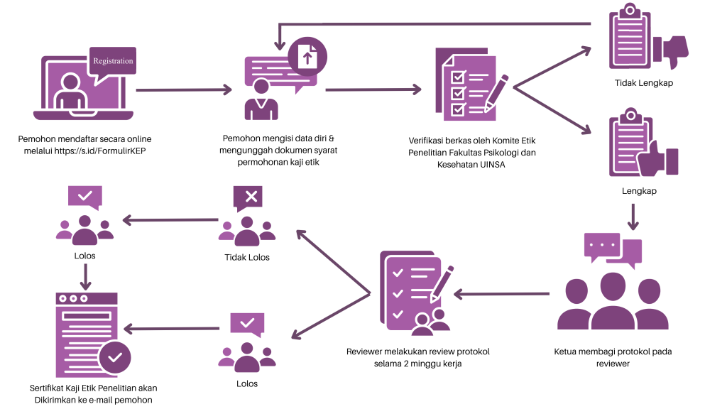 - Komite Etik Penelitian Fakultas Psikologi dan Kesehatan UINSA melakukan verifikasi berkas.