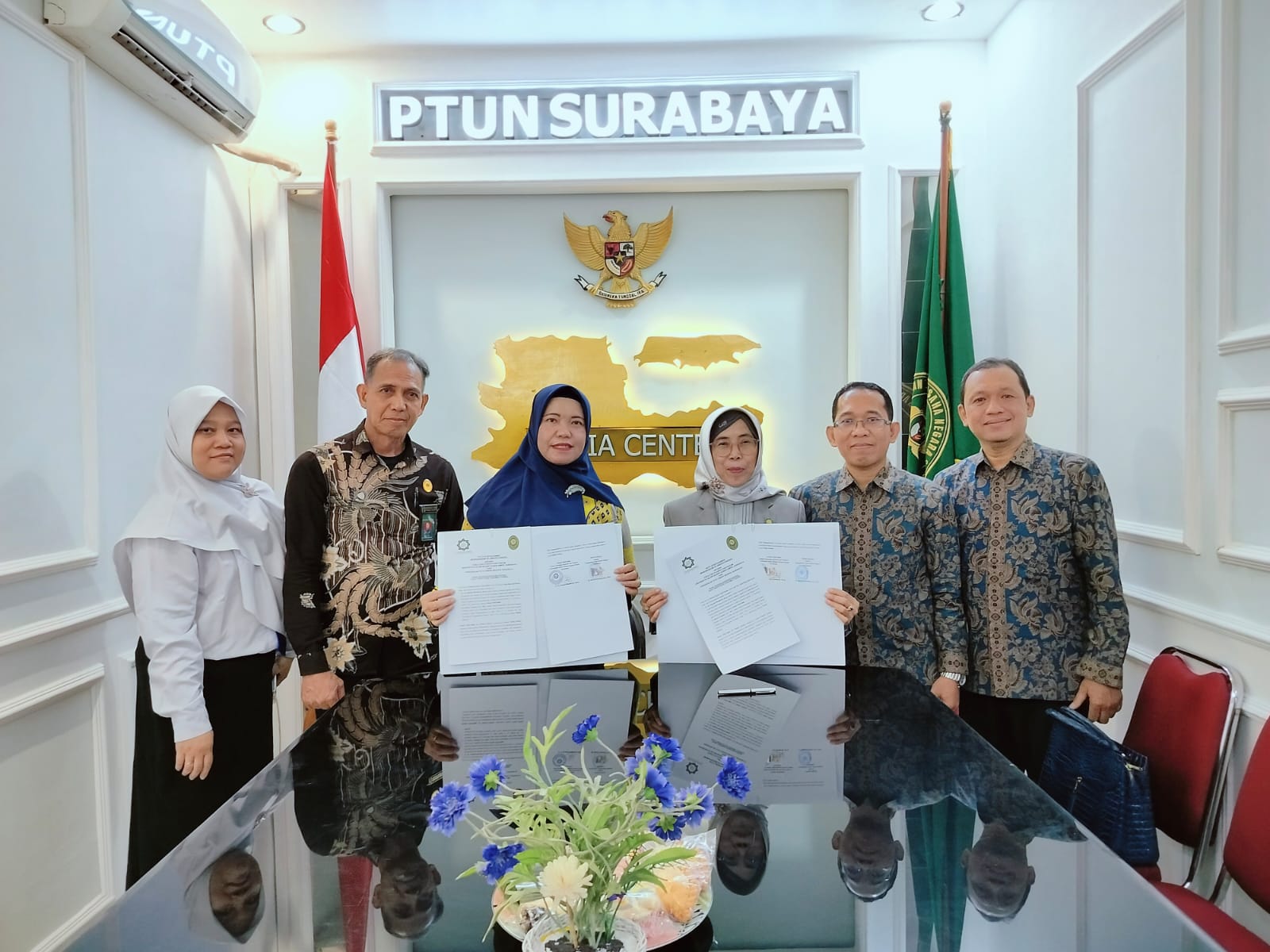 MoU tersebut ditandatangani langsung oleh Dekan FSH UINSA, Dr. Hj. Suqiyah Musafa’ah, M.Ag., dan Ketua PTUN Surabaya, Hj. Nenny Frantika, S.H., M.H. Penandatanganan ini mencerminkan komitmen kedua institusi untuk saling mendukung pengembangan kapasitas kelembagaan, sekaligus mendorong penyelenggaraan kegiatan akademik yang lebih kontekstual. Kerja sama ini juga merupakan bagian dari strategi FSH UINSA dalam meningkatkan kualitas pelaksanaan Tri Dharma Perguruan Tinggi melalui pemanfaatan lingkungan peradilan sebagai ruang pembelajaran langsung dan interaktif bagi mahasiswa.