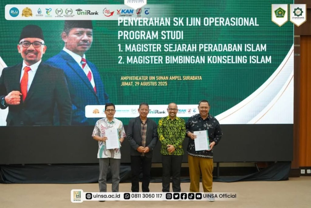 Jum’at, 29 Agustus 2025 – Fakultas Syariah dan Hukum UIN Sunan Ampel (FSH UINSA) Surabaya turut serta dalam menyukseskan rangkaian kegiatan Kick-Off & Launching Layanan UINSA yang digelar pada Jumat, 29 Agustus 2025. Acara ini dihadiri langsung oleh Direktur Jenderal Pendidikan Islam Kementerian Agama RI, Prof. Dr. H. Suyitno, M.Ag., dan menjadi momentum penting dalam memperkuat layanan akademik, kesehatan, serta pengembangan kelembagaan di lingkungan UINSA.