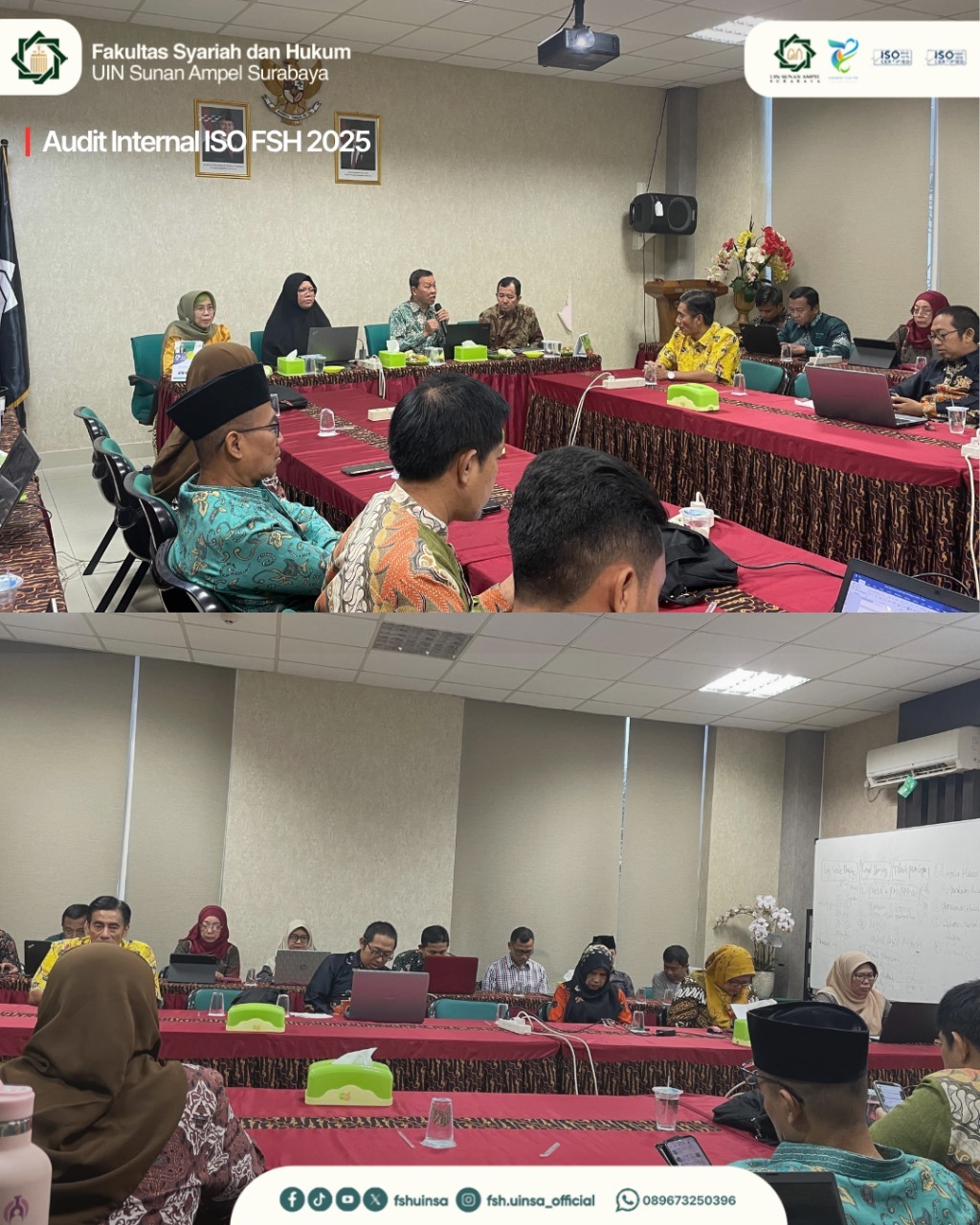 Surabaya, 6 Agustus 2025 — Fakultas Syariah dan Hukum (FSH) Universitas Islam Negeri Sunan Ampel (UINSA) Surabaya menyelenggarakan Audit Eksternal Resertifikasi ISO pada hari Rabu, 6 Agustus 2025. Kegiatan ini merupakan bagian dari upaya strategis fakultas dalam memperkuat sistem tata kelola berbasis mutu, serta menjadi bukti nyata komitmen terhadap transparansi dan akuntabilitas institusional. Pelaksanaan audit menjadi sarana untuk memastikan bahwa seluruh proses akademik dan administratif di FSH berjalan sesuai standar internasional yang ditetapkan.