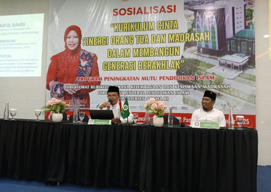 Pamekasan, 22 Oktober 2025 — Fakultas Tarbiyah dan Keguruan UIN Sunan Ampel Surabaya, sebagai pelaksana kegiatan dari Direktorat Kurikulum, Sarana, Kelembagaan, dan Kesiswaan (KSKK) Direktorat Jenderal Pendidikan Islam Kementerian Agama Republik Indonesia, kembali menyelenggarakan kegiatan inspiratif bertajuk “Kurikulum Cinta: Sinergi Orang Tua dan Madrasah dalam Membangun Generasi Berakhlak” di Hotel Cahaya Berlian, Pamekasan, Madura.
