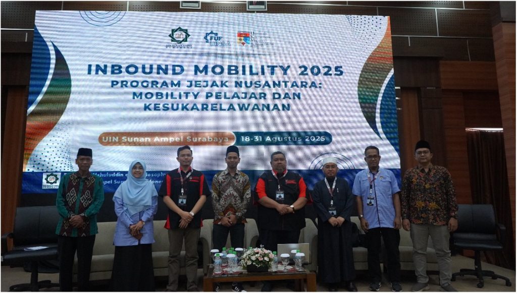 Pada Rabu (27/08), Fakultas Ushuluddin dan Filsafat (FUF) Universitas Islam Negeri Sunan Ampel (UINSA) Surabaya menyelenggarakan seminar internasional berkolaborasi dengan dosen dari Universiti Kebangsaan Malaysia (UKM). Kegiatan ini merupakan bagian dari Inbound Mobility 2025 dengan tajuk “Program Jejak Nusantara: Mobility Pelajar dan Kesukarelawanan“, yang bertujuan memperkuat jejaring akademik sekaligus mengembangkan kolaborasi lintas negara. Seminar ini berlangsung di Gedung Amphitheater, Twin Tower UINSA.