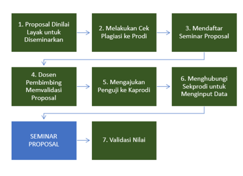| 1. Proposal Dinilai Layak untuk Diseminarkan | Seminar proposal dapat dilakukan jika materi tugas akhir yang disusun dinilai layak untuk diseminarkan dengan bukti persetujuan dosen pembimbing serta memenuhi syarat cek plagiasi. |