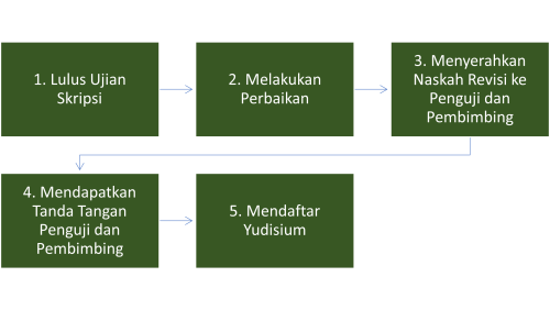 Setelah melaksanakan ujian skripsi dan dinyatakan lulus, mahasiswa harus memperbaiki skripsinya berdasarkan catatan dari para penguji (revisi). Setelah itu, mahasiswa harus menyerahkan naskah skripsi yang sudah diperbaiki ke para penguji serta dosen pembimbing. Dalam hal ini, para penguji dan dosen pembimbing akan memberikan tanda tangan sebagai bukti bahwa mahasiswa benar-benar sudah melakukan perbaikan. Setelah mendapat seluruh tanda tangan penguji dan pembimbing, mahasiswa bisa mendaftar yudisium ke bagian akademik.
