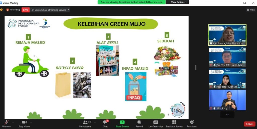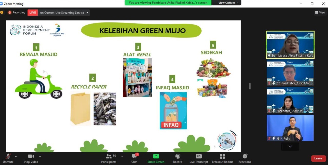 Mahasiswa Ekonomi Syariah UIN Sunan Ampel Surabaya kembali mengharumkan nama kampus di level nasional melalui kegiatan Indonesia Development Forum 2022 yang diselenggarakan oleh Kementerian PPN/Bappenas RI secara daring Kamis (17/03/2022). Tim UINSA diwakili oleh Atika Fissilmi Kaffah, Ika Evarianti, dan Alfa Nihayatun Ni’mah mahasiwa Prodi Ekonomi Syariah mengusulkan paparan singkat berjudul “Aplikasi Green Mlijo: Upaya Digitalisasi Ekonomi Berbasis Masjid” dalam Call for Submission Indonesia Development Forum 2022 dan berhasil lolos dalam seleksi ketat yang dilakukan. Ide Aplikasi Green Mlijo termasuk dalam kategori subtema keempat, yakni Upaya Percepatan Tranformasi Digital dengan Mendorong Aktivitas IKM. Dimana hal ini selaras dengan prioritas pemerintah 2020-2025 yaitu transformasi digital.