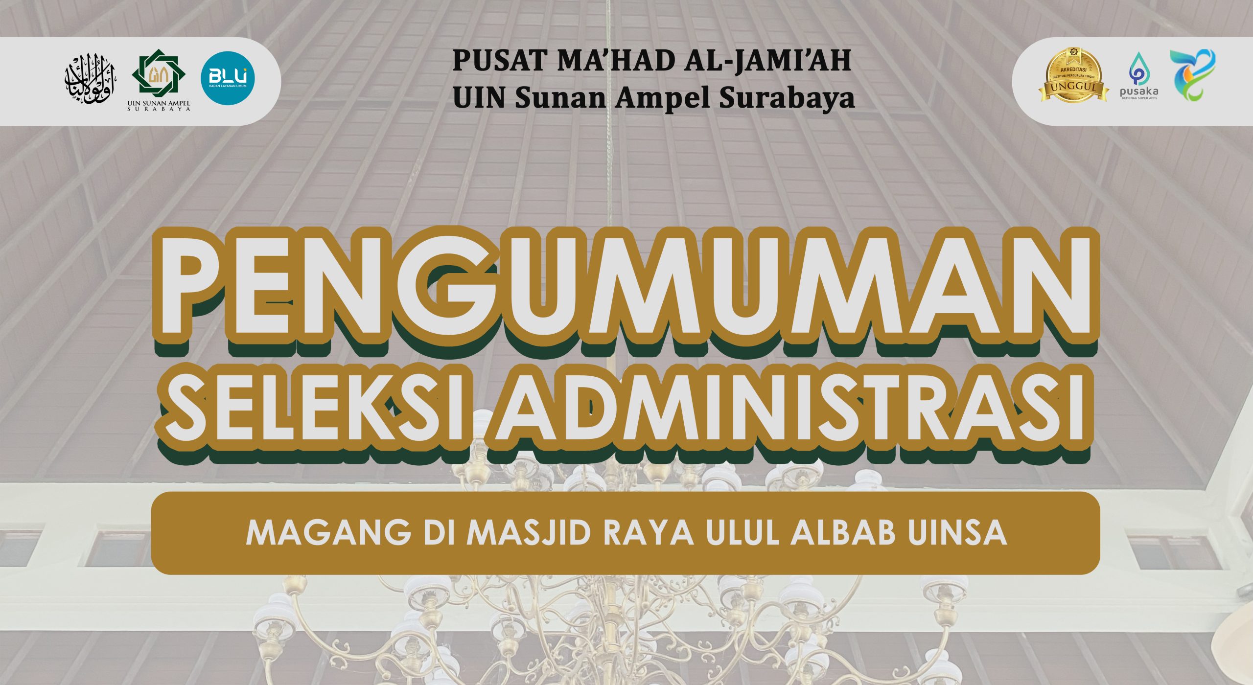 Berdasarkan seleksi administrasi Rekrutmen Magang di Masjid Raya Ulul Albab Semester Gasal Tahun Akademik 2025-2026 Pusat Ma’had Al-Jami’ah UIN Sunan Ampel Surabaya disampaikan hal-hal sebagai berikut: