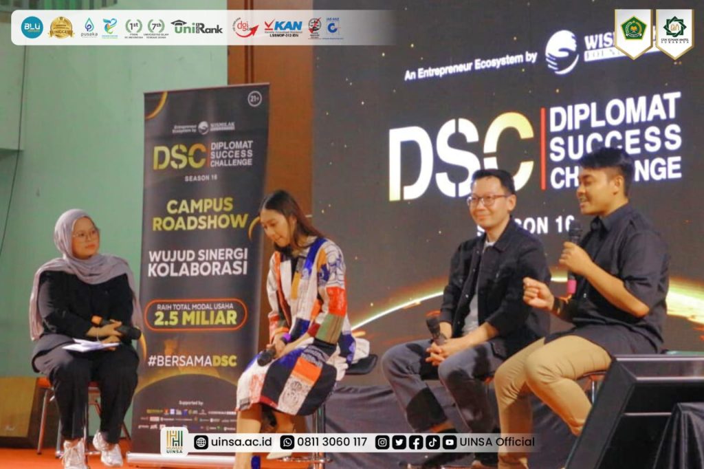 UINSA Newsroom, Jumat (29/08/2025); Himpunan Mahasiswa Program Studi Manajemen Zakat dan Wakaf (HIMA PRODI MAZAWA) Fakultas Ekonomi dan Bisnis Islam (FEBI) UIN Sunan Ampel (UINSA) Surabaya didukung Wismilak Foundation menyelenggarakan Talkshow Inspiratif Diplomat Success Challenge (DSC) Season 16 dengan tema “Idea to Impact: Creative Business Hacks” pada Selasa (26/8/2025). Kegiatan yang digelar di Auditorium UINSA ini diikuti sekitar 300 peserta, mayoritas mahasiswa.