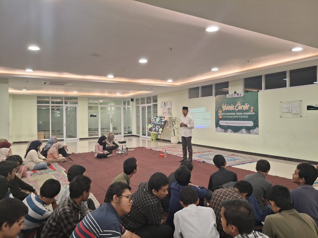 Himpunan Mahasiswa Teknik Lingkungan (HMTL) UIN Sunan Ampel Surabaya telah melaksanakan kegiatan pengajian secara offline pada hari Rabu, 19 November 2025 bertempat di Lobby Lt. 7 Gedung Terpadu FST, Kampus II UIN Sunan Ampel Surabaya. Kegiatan ini diselenggarakan sebagai bentuk pembinaan spiritual bagi mahasiswa serta ruang refleksi mengenai nilai keislaman yang selaras dengan identitas Teknik Lingkungan.