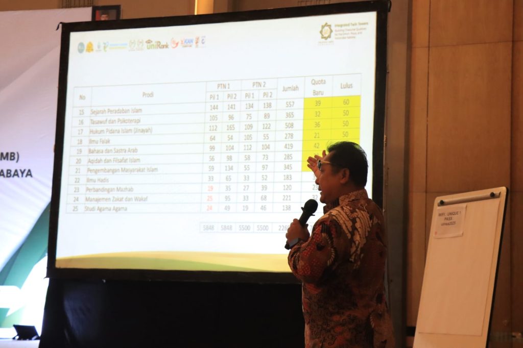 Malang, 28 Oktober 2025 – Universitas Islam Negeri (UIN) Sunan Ampel Surabaya menyelenggarakan kegiatan evaluasi pelaksanaan Seleksi Penerimaan Mahasiswa Baru (SPMB) 2025 dan persiapan untuk SPMB Tahun 2026, dengan tema “Transforming Admission Strategy: Analisis Kesenjangan Preferensi Mahasiswa 2025 Mahasiswa”. Kegiatan ini bertujuan untuk menilai keberhasilan pelaksanaan seleksi PMB 2025 serta merumuskan strategi dan perencanaan yang lebih baik untuk SPMB 2026 mendatang.