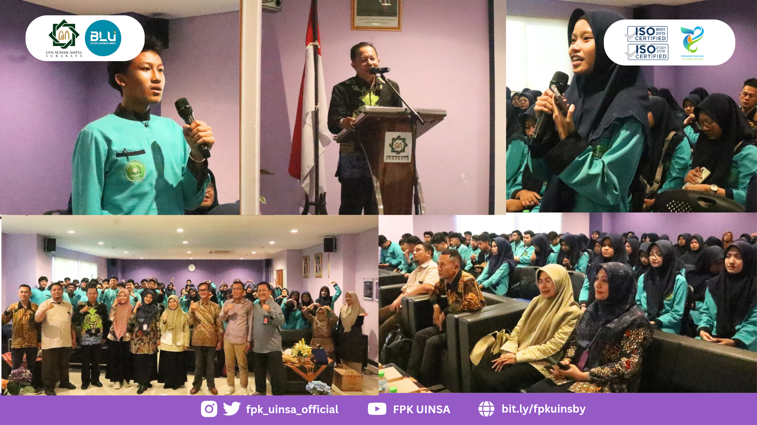 Kegiatan inti diisi dengan materi Sosialisasi Sistem Penerimaan Murid Baru (SPMB) UINSA oleh Abdullah Rofiq, S.Kom., M.M., sebagai koordinator pusat penerimaan mahasiswa baru, yang memberikan gambaran lengkap tentang jalur masuk dan kehidupan kampus di UINSA. Kegiatan juga dimeriahkan dengan sesi permainan interaktif yang dipandu oleh Syafruddin Faisal Thohar, M.Psi., Psikolog., serta pemaparan profil program studi yang ada di FPK UINSA.