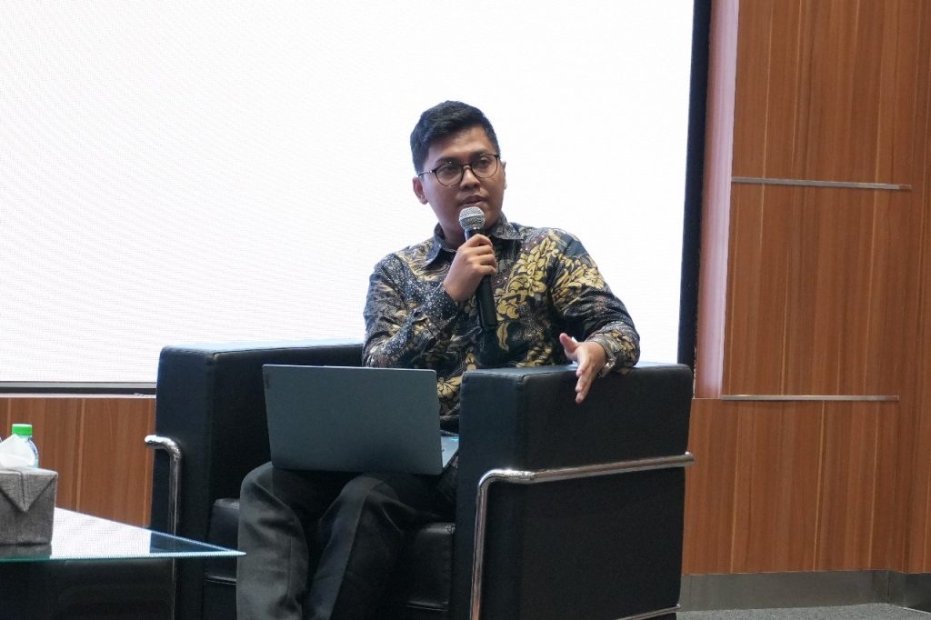 Memasuki sesi utama, kegiatan berlanjut ke diskusi panel dengan tema yang sama, yaitu “Bahasa dan Sastra Arab di Era Digital: Inovasi, Kolaborasi, dan Arah Baru.” Diskusi ini dipandu oleh Bima Achbar Pamungkas, mahasiswa Prodi Bahasa dan Sastra Arab semester 5, yang bertugas sebagai moderator. Narasumber pertama, Malik Fahad, S.Hum., M.A., seorang peneliti linguistik Arab, memaparkan materi berjudul “Transformasi Riset Bahasa Arab di Era Digital: Pendekatan Linguistik Korpus sebagai Arah Baru Kajian Bahasa.” Dalam paparannya, beliau menyampaikan rasa terima kasih dan kehormatan karena telah diundang dalam kegiatan ini. Beliau menilai bahwa tema konferensi sangat relevan dengan perkembangan riset bahasa Arab masa kini. Jika sebelumnya penelitian bahasa Arab dilakukan secara manual, kini teknologi memungkinkan peneliti mencari dan mengolah ribuan kata melalui korpus digital. Beliau menjelaskan bahwa di era digital, data bahasa Arab tersebar di berbagai platform seperti koran, artikel online, hingga media sosial. Namun, tantangan terbesar yang dihadapi adalah kurangnya kemampuan peneliti dalam mengelola data tersebut. Bapak Malik Fahad mencontohkan beberapa teknologi korpus digital berbahasa Arab, seperti ArTenTen, KACST, CoCin, dan CoRep, yang menjadi alat penting dalam riset linguistik modern. Beliau menegaskan bahwa jika belum ada korpus yang sesuai dengan kebutuhan penelitian, maka peneliti perlu membangun korpusnya sendiri. Menurutnya, kemampuan memahami teknologi digital akan membantu peneliti menjawab persoalan linguistik secara lebih efisien dan mendalam.
