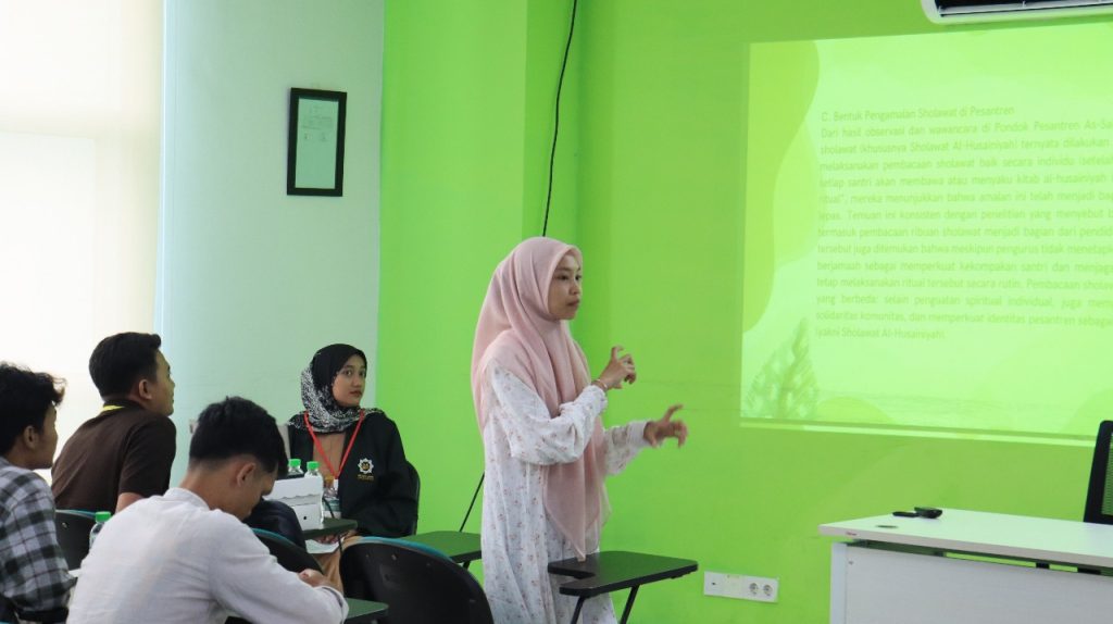 Acara kemudian dilanjutkan dengan pembacaan doa oleh Dr. Abdullah Ubaid, M.Ag. Beliau juga berpesan agar seluruh peserta dapat menghasilkan karya tulis yang bermanfaat dan semoga kegiatan konferensi ini berlangsung dengan lancar serta penuh keberkahan. Setelah doa bersama, peserta menyanyikan lagu “Bagimu Negeri” sebagai bentuk rasa syukur dan pengabdian kepada tanah air dengan meletakkan tangan terbuka di dada sebelah kiri.