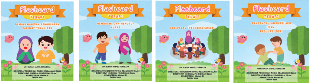 Lalu, mengapa harus media visual? Anak-anak dengan gangguan spektrum autisme lebih pembelajar visual (visual learner). Mereka cenderung lebih fokus dan mudah memproses informasi yang disajikan melalui gambar, dan kesulitan merespons sensasi auditori. Media visual seperti flash card terbukti efektif membantu mereka dalam komunikasi, pemahaman konsep, dan mengurangi perilaku bermasalah seperti tantrum. Media visual PERISAI dirancang khusus dengan memperhatikan elemen desain yang adaptif, seperti kontras warna tinggi, font sederhana, dan ilustrasi nyata, untuk memastikan pesan Islami tersampaikan dengan jelas dan tidak memicu overstimulasi.