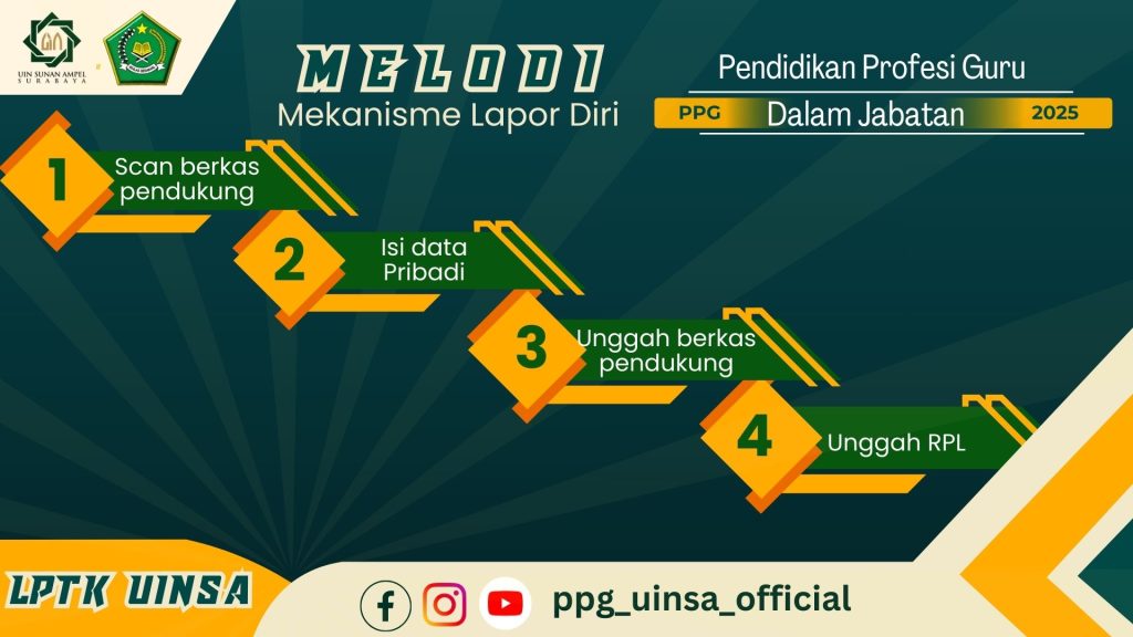 - Lapor diri dilaksanakan secara online pada tanggal 19-23 NOvember 2025 melalui laman https://ppg.uinsa.ac.id/login