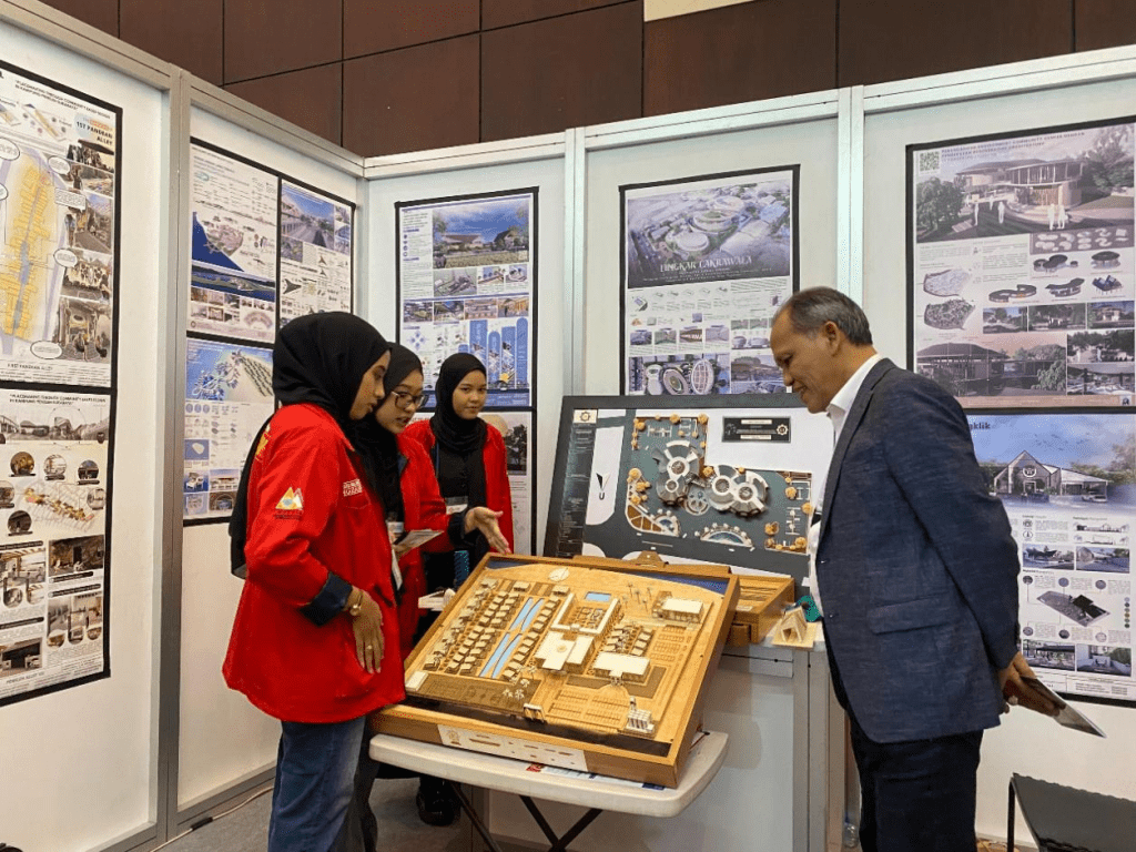 Antusiasme pengunjung terhadap booth UINSA juga menunjukkan bahwa karya-karya mahasiswa memiliki daya tarik tersendiri, terutama dalam menggabungkan arsitektur dengan nilai spiritual Islam. Banyak di antara pengunjung memberikan apresiasi positif dan membuka peluang diskusi mengenai kemungkinan kerja sama penelitian, pengembangan desain, maupun program akademik. Respon positif tersebut memperkuat posisi Prodi Arsitektur UINSA sebagai salah satu program studi yang konsisten mendorong inovasi berbasis keberlanjutan dan kearifan lokal.