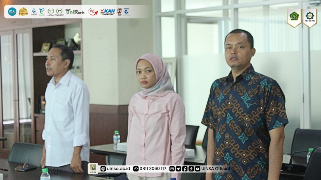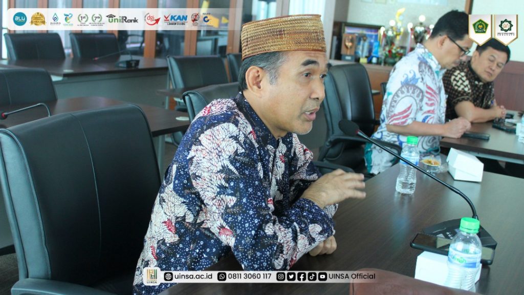 Rombongan Atase Malaysia disambut Wakil Rektor Bidang Kemahasiswaan dan Kerja Sama UINSA, Prof. Dr. Abdul Muhid, M.Si., didampingi jajaran dekan dan tim Pusat Layanan Internasional UINSA.