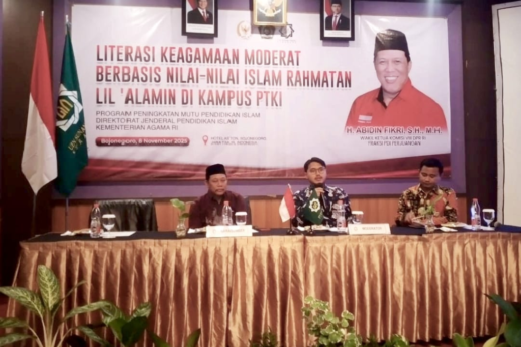Pada pemaparan materi sesi pertama, Wakil Ketua Komisi VIII DPR RI, H. Abidin Fikri, S.H., M.H menyoroti peran strategis PTKI dalam memperkuat gerakan Islam moderat di tengah masyarakat. Ia menggarisbawahi pentingnya kerja sama antara kampus, legislatif, dan pemerintah dalam membangun generasi muda yang religius sekaligus nasionalis. “PTKI harus menjadi pusat lahirnya pemimpin dan intelektual Islam yang mampu menghadirkan wajah Islam yang menyejukkan dan solutif bagi bangsa,” ujarnya.