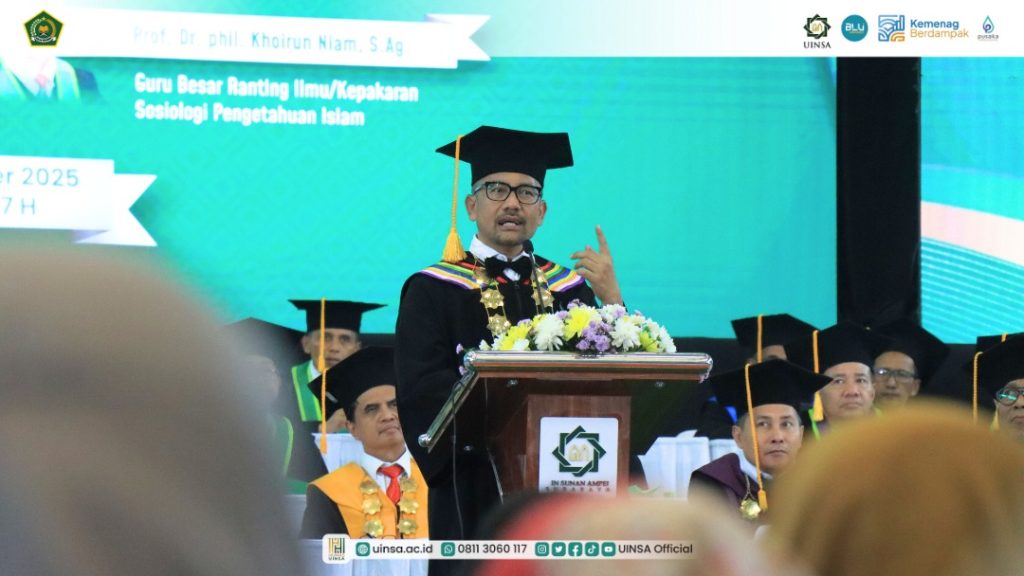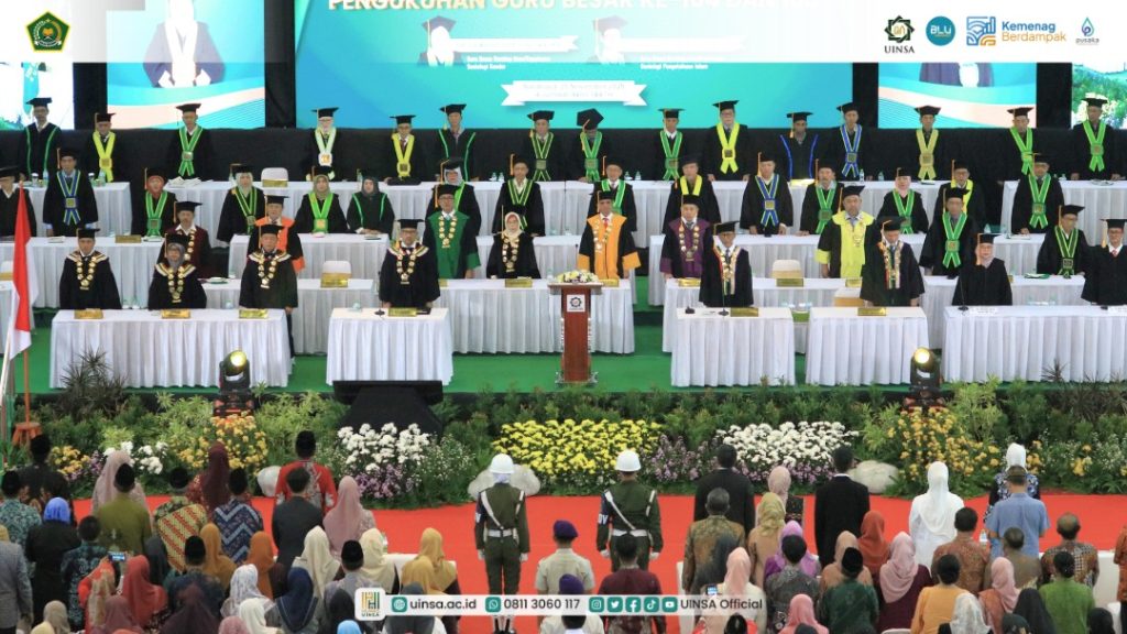 UINSA Newsroom, Selasa (25/11/2025); UIN Sunan Ampel (UINSA) Surabaya kembali mengukuhkan dua guru besar pada Selasa, 25 November 2025. Tepat di Hari Guru Nasional 2025 ini, total jumlah Guru Besar pada UINSA Surabaya sebanyak 105 Profesor dengan berbagai kepakaran di bidangnya.