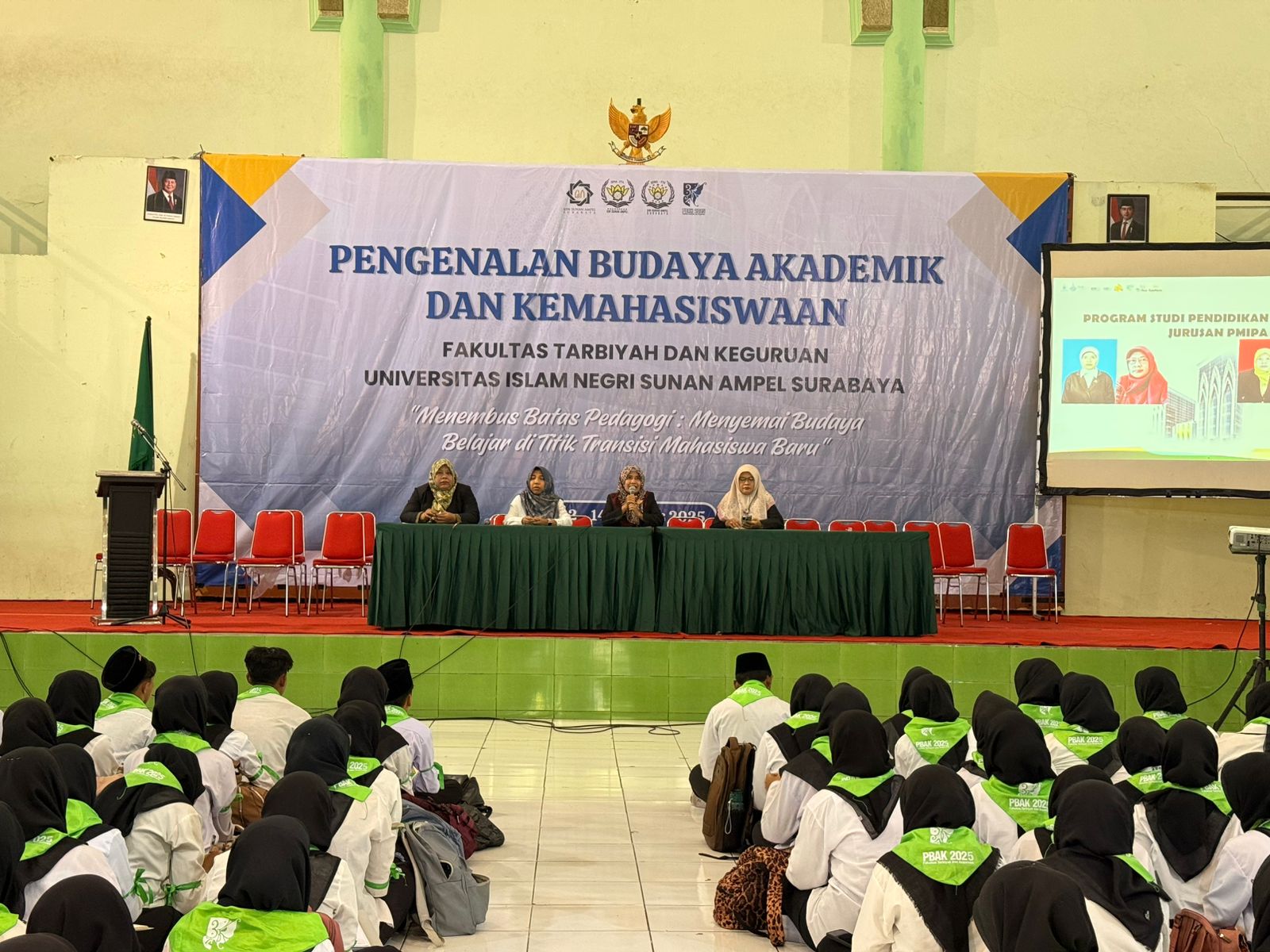 urabaya – Program Studi Pendidikan Matematika Fakultas Tarbiyah dan Keguruan UIN Sunan Ampel Surabaya menggelar kegiatan Pengenalan Budaya dan Akademik Kemahasiswaan (PBAK) tahun 2025 pada Rabu, 13 Agustus 2025, bertempat di Auditorium UINSA. Acara ini dihadiri oleh Ketua Jurusan Matematika dan Ilmu Pengetahuan Alam (MIPA), Dr. Siti Lailiyah, M.Si., Ketua Prodi Pendidikan Matematika, Dr. Sutini, M.Si., serta Sekretaris Prodi Pendidikan Matematika, Wahyuni Fajar Arum, M.Si.