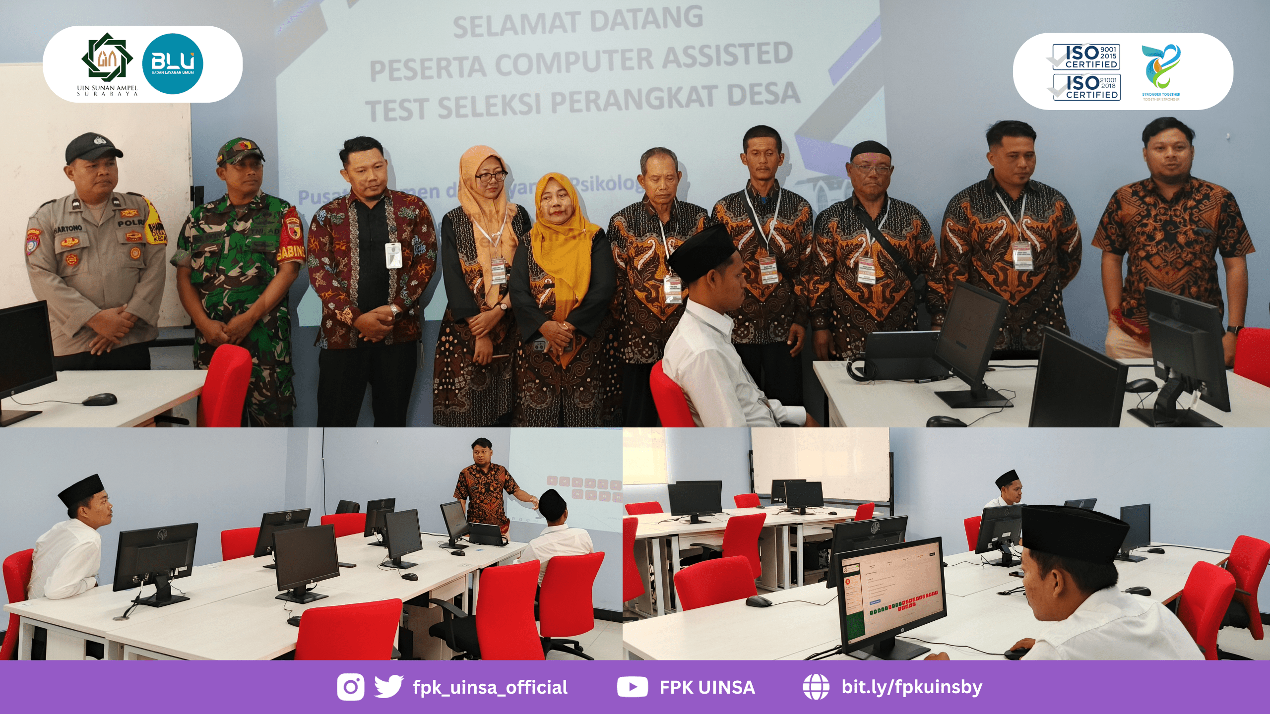 Surabaya – (23/07/2025) Dinas Pemberdayaan Masyarakat dan Desa (DPMD) Desa Kedungmlati, Kecamatan Kesamben, Kabupaten Jombang, bersama Pusat Asesmen dan Layanan Psikologi Universitas Islam Negeri Sunan Ampel Surabaya (PALP UINSA), menyelenggarakan seleksi Calon Perangkat Desa berbasis Computer Assisted Test (CAT) yang berlangsung di Fakultas Psikologi dan Kesehatan (FPK) UINSA. Kegiatan terlaksana di laboratorium komputer lantai tiga FPK.