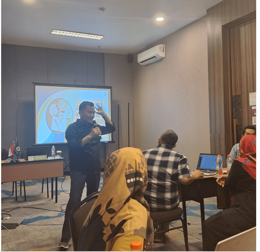 Sebagai bagian dari penguatan kapasitas, para peserta kemudian dibagi ke dalam beberapa tim kerja sesuai rumpun bidang masing-masing. Terdapat tim yang fokus pada GKMI (Guru Kelas MI), tim SKI (Sejarah Kebudayaan Islam), tim PAI (Pendidikan Agama Islam), serta tim Fiqih. Selain itu, ada pula kelompok yang mendalami analisis soal SJT (Situational Judgment Test) dan kelompok yang secara khusus membahas studi kasus reflektif. Melalui pembagian ini, diskusi berjalan lebih fokus, mendalam, dan menghasilkan pemaparan yang memperkaya wawasan seluruh peserta.