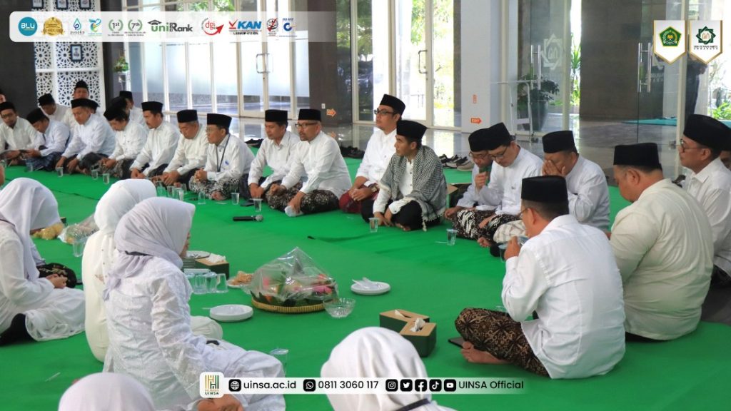 UINSA Newsroom, Rabu (22/10/2025); Usai upacara peringatan Hari Santri 2025 di Halaman Depan Gedung Twin Towers, UIN Sunan Ampel (UINSA) Surabaya menggelar doa bersama di Lobby Gedung Twin Towers UINSA Kampus A. Yani Surabaya pada Rabu (22/10/2025).