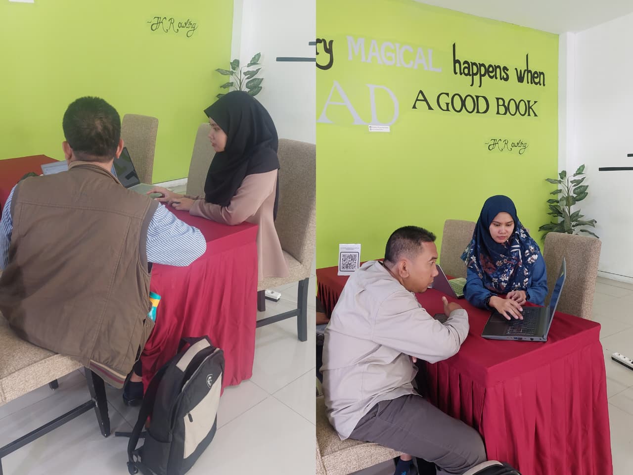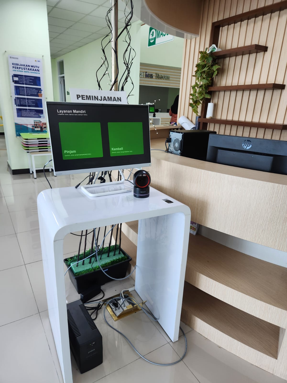 - Pemustaka melakukan transaksi peminjaman secara mandiri melalui PC yang disediakan perpustakaan