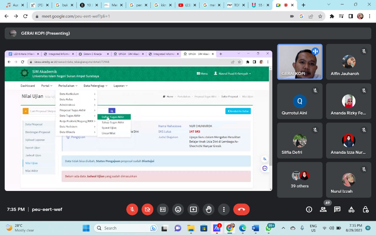 Materi yang disajikan dalam pelatihan ini sangat variatif dan terstruktur, mencakup tahapan-tahapan penting dalam penulisan skripsi. Beberapa topik utama yang dibahas meliputi penyusunan proposal penelitian, metodologi penelitian yang relevan untuk PIAUD (baik kualitatif maupun kuantitatif), teknik pengumpulan data, analisis data, hingga strategi menghindari plagiarisme. Dosen-dosen ahli dari lingkungan FTK UINSA turut didapuk menjadi pemateri, berbagi tips dan trik berdasarkan pengalaman mereka dalam membimbing serta menguji skripsi.