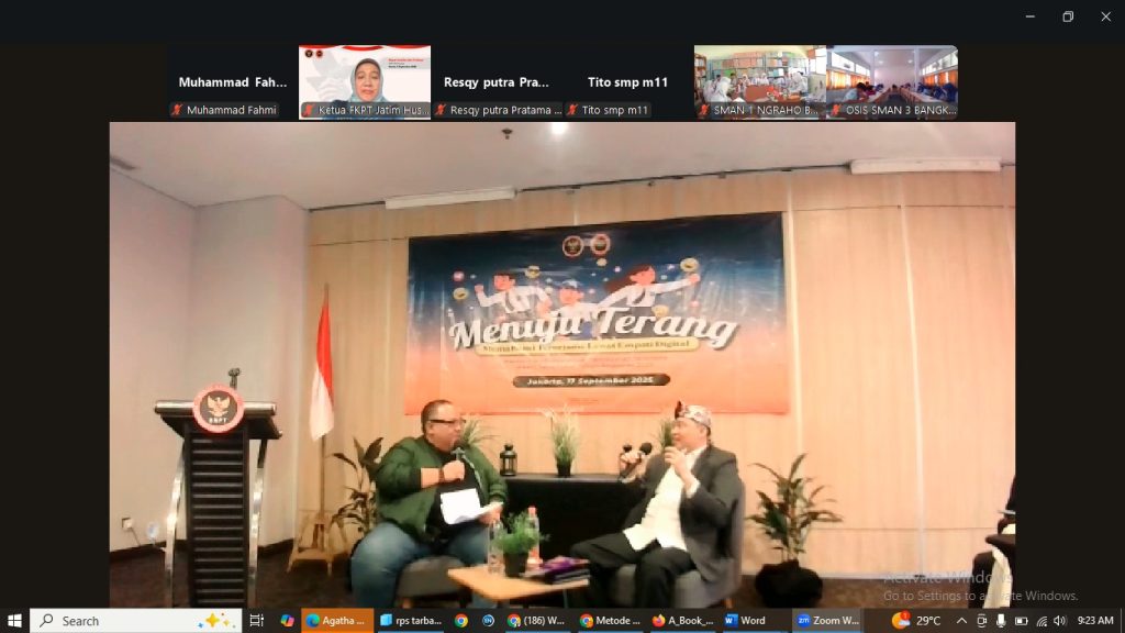 Dalam foum kegiatan “Menuju Terang: Memahami Terorisme Lewat Empati Digital” yang digelar secara daring melalui zoom meeting oleh Badan Nasional Penanggulangan Terorisme (BNPT) Republik Indonesia bersama Forum Koordinasi Pencegahan Terorisme (FKPT) Jawa Timur pada Rabu, 17 September 2025, Salah satu dosen PAI -yang juga menjadi ketua FKPT Jatim- Prof. Husniyatus Salamah Zainiyati (Prof. Titik), menjadi pembicara dalam forum ini.
