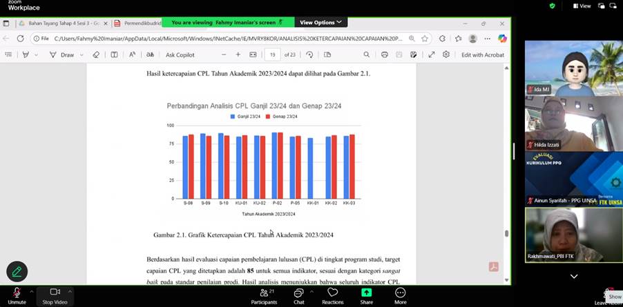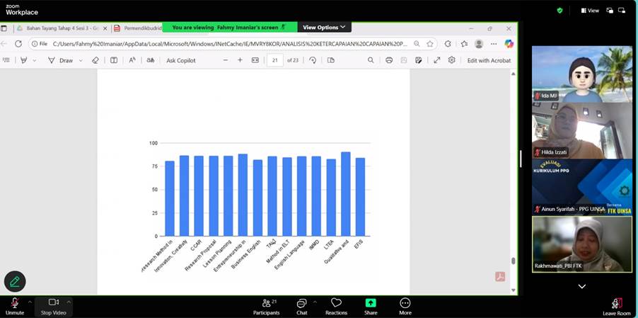 Setelah paparan dekanat, agenda dilanjutkan dengan break out room di masing-masing jurusan. Jurusan Pendidikan Bahasa di pimpin oleh sekjur Dr. Fathur Rohman, M.Ag, tidak ketinggalan ketua Jurusan Dr. Moh. Faizin menyampaikan peran dosen dan hal hal yang dibutuhkan dalam akreditasi agar kegitan bapak ibu bisa terdokumentasikan dengan baik. Setelah itu dilanjutkan dengan paparan masing-masing prodi. Ketua program studi PBI menyampaikan 5 hal yaitu visi keilmuan pada review kurikulum 2025,optimalisasi Pembimbing akademik, persiapan BKD, pemenuhan dokumen akreditasi, dan tentang hasil tracer study 2024 serta hasil analisis CPL. Rapat dosen ini dihadiri oleh seluruh dosen PBI dengan penuh antusias.