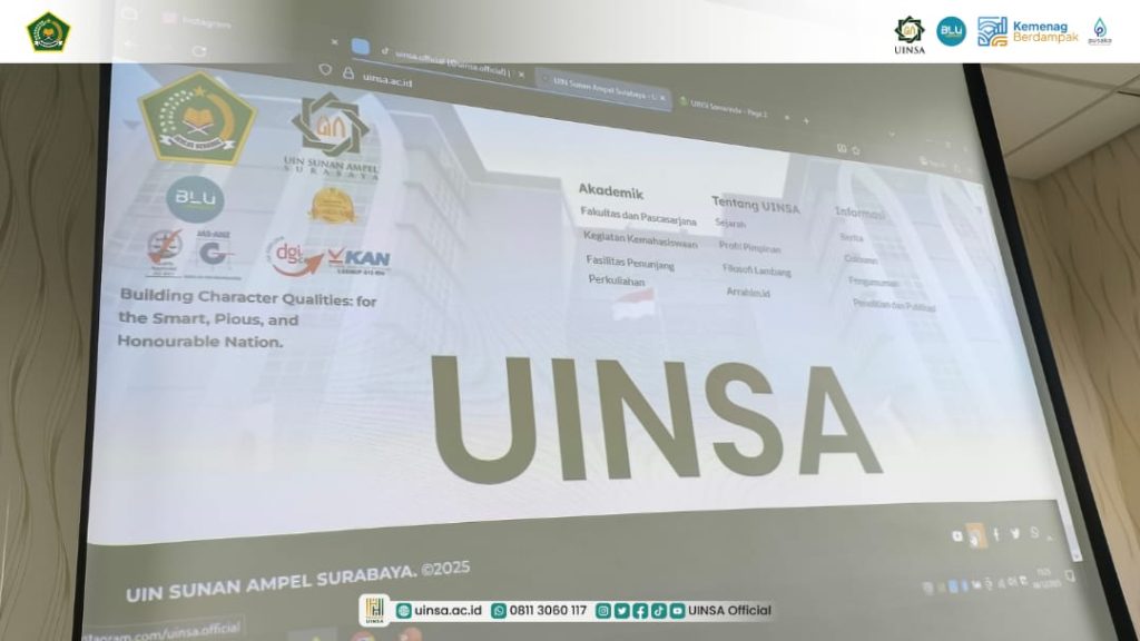UINSA Newsroom, Jumat (05/12/2025); Awal Desember 2025, UIN Sunan Ampel (UINSA) Surabaya resmi menerima Penghargaan Terbaik Pengelolaan Media Sosial dalam Humas Award 2025 yang digelar Kementerian Agama RI. Prestasi tersebut tentu membanggakan, namun tetap dibutuhkan evaluasi khususnya pada pengelolaan website yang belum masuk nominasi.